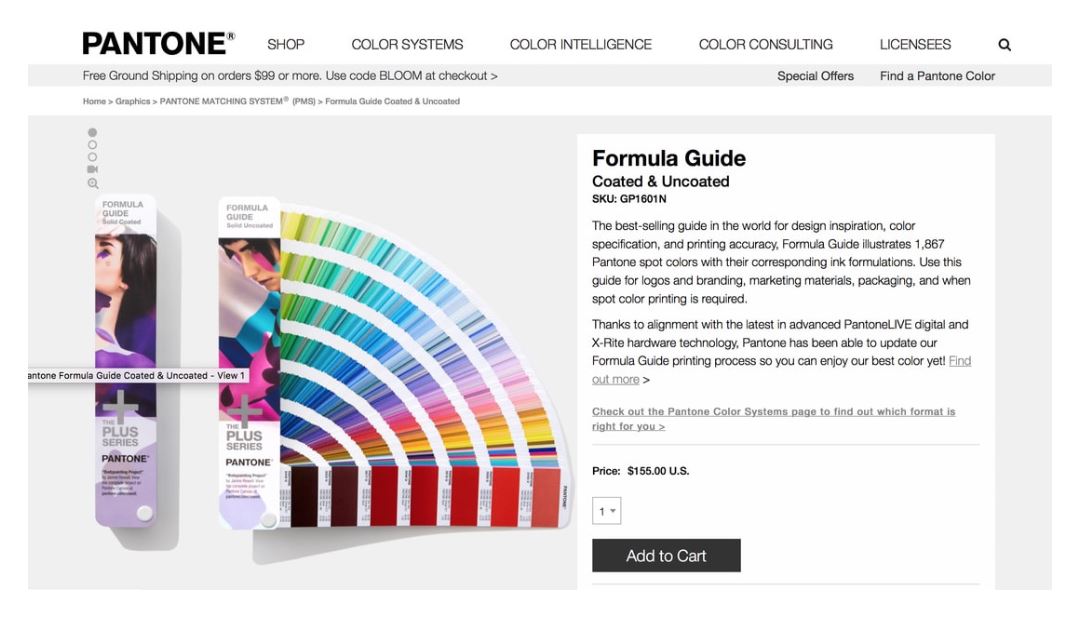3) Pantone Chart (www.pantone.com/color-finder). You may buy the Formula Guide for Pantone colors and use the code for the uncoated swatches.