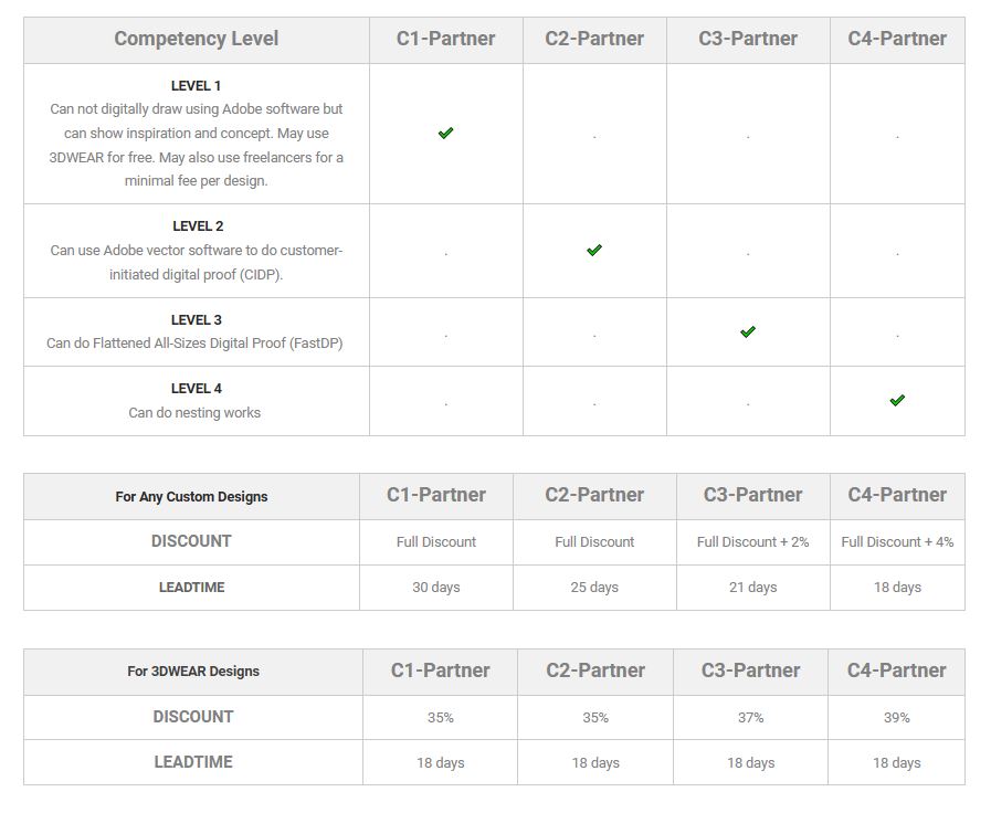 I want to start as a C1 Partner because I am not yet capable of creating digital designs using Adobe or similar software. I will only use 3DWEAR designs and maybe engage paid freelancers in some cases.